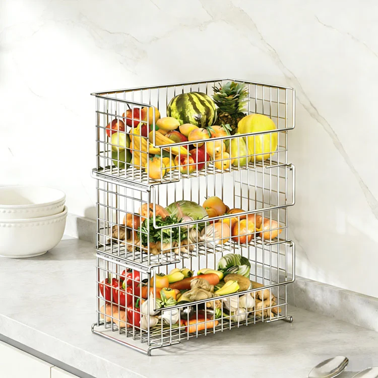 Scenáre použitia: Dá sa umiestniť do rohu kuchyne alebo pod pracovnú dosku, čo umožňuje vrstvené skladovanie zeleniny, ovocia, občerstvenia, ryže, múky atď., čím sa dosiahne „vizuálne uloženie“ a umožní vám nájsť položky, ktoré potrebujete, na prvý pohľad, čím sa eliminuje problém s prehrabávaním sa v skrinkách. Viacvrstvový stohovací dizajn môže plne využiť vertikálny priestor, čo umožňuje, aby kuchynská doska a podlaha boli bez neporiadku.